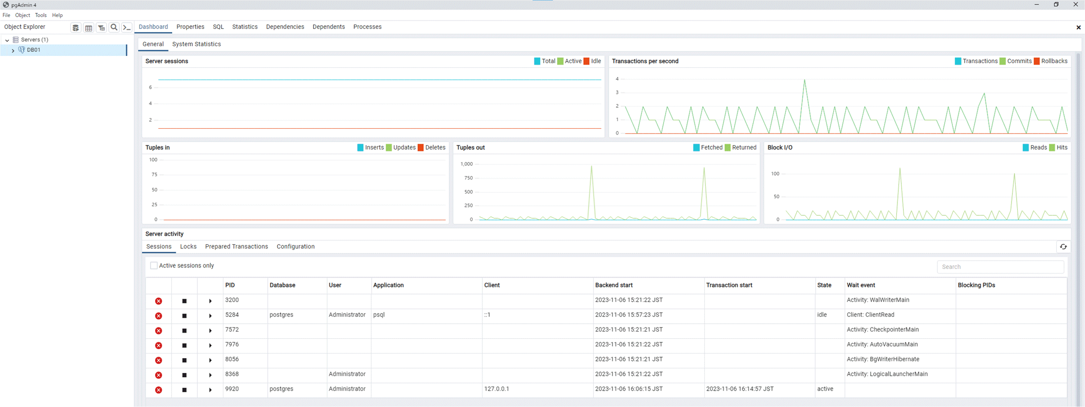 This section describes the procedure for monitoring connections using [Server Status] in pgAdmin.