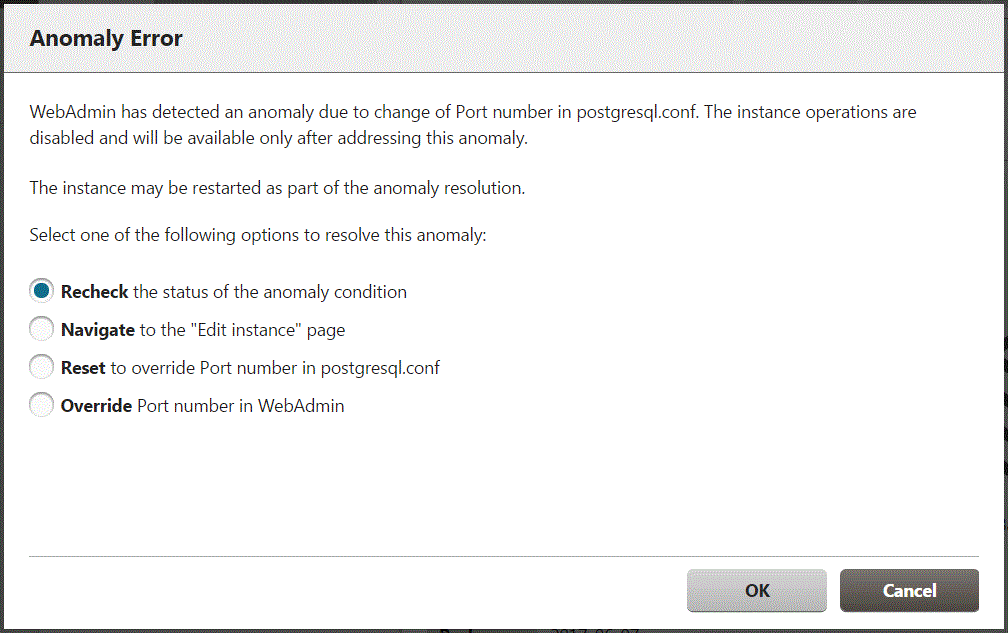WebAdmin checks for anomalies when an instance is selected for viewing or any instance operation is performed. Anomalies will be identified for the selected instance only.