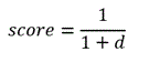 In the case of text meaning search, the score is calculated using the distance d between the vector representations of the text chunk and the query text, according to the following formula.