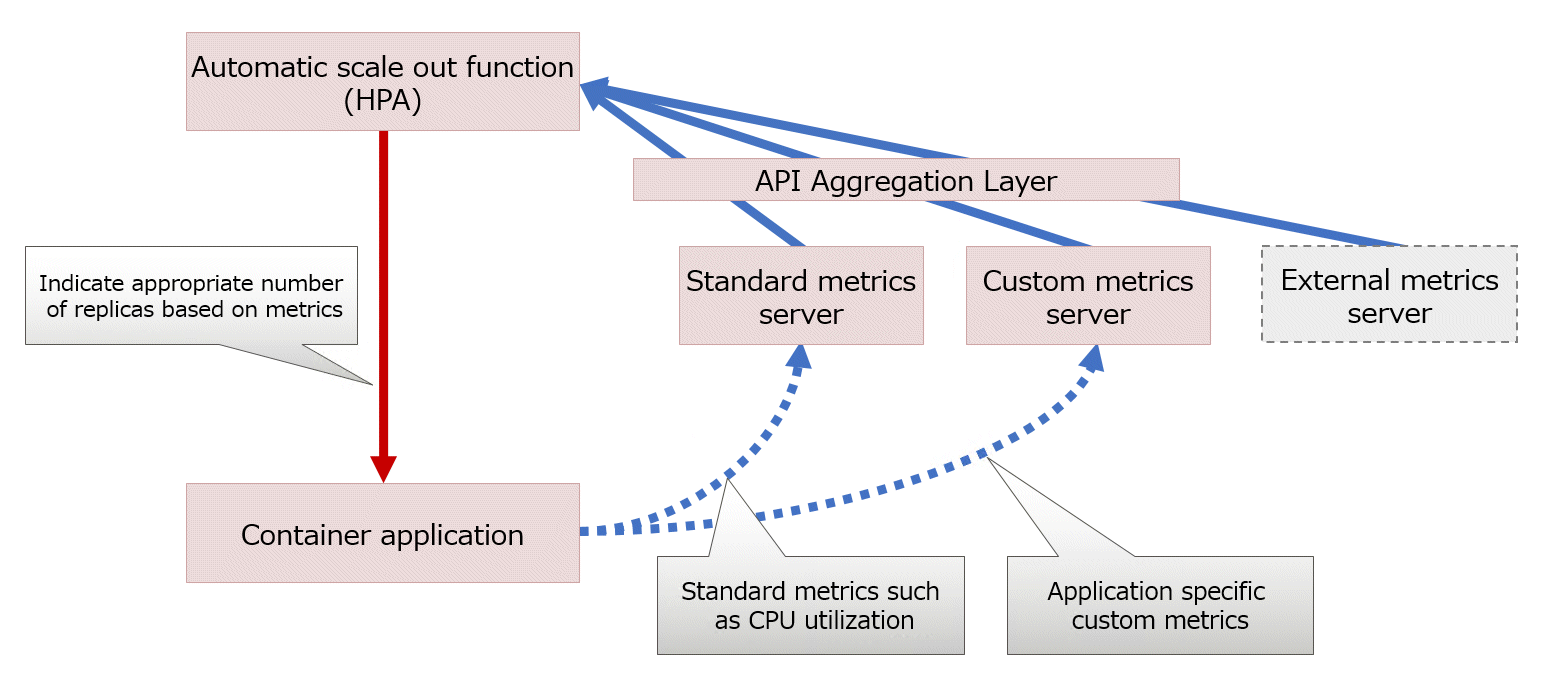 The automatic scale out feature works based on the performance metrics (metrics) of objects in a Kubernetes cluster. Metrics are provided by a service that implements the metrics API, called a metrics server.