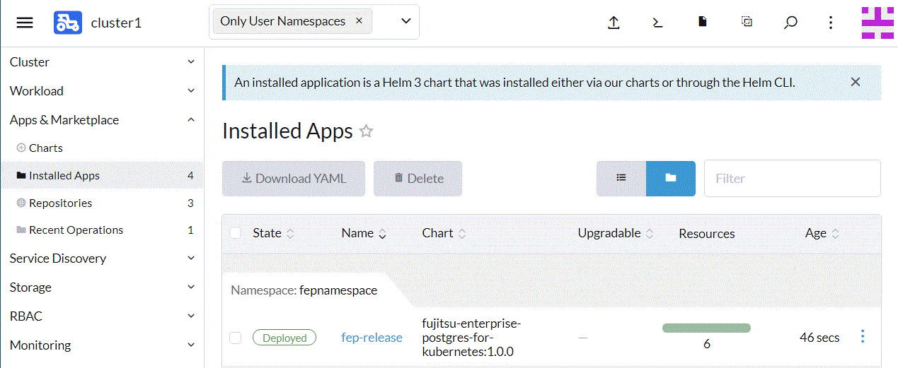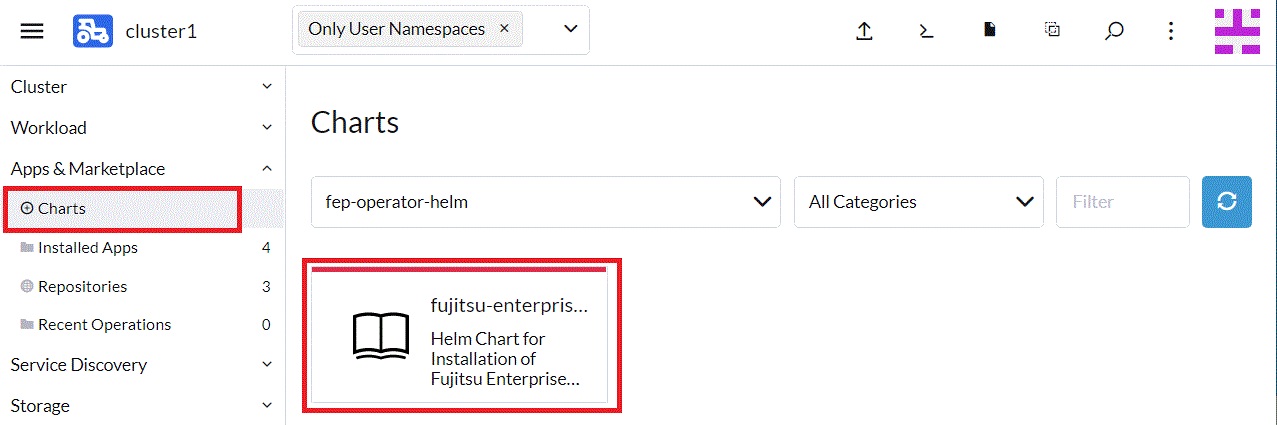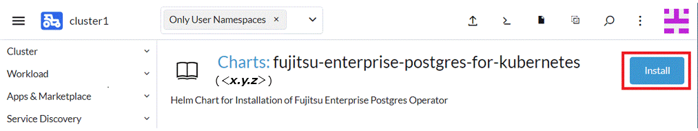 From the leftmost tab, click [Charts], then click [fujitsu-enterprise-postgres-operator].