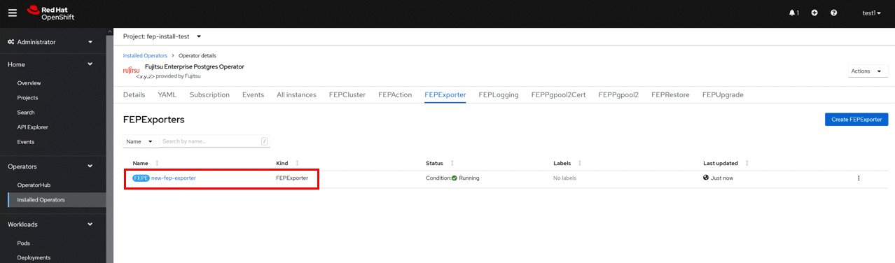 FEPExporter will be created automatically under the name <cluster-name>-fepexporter. And it will list show all the database with statistics of specified FEPcluster.