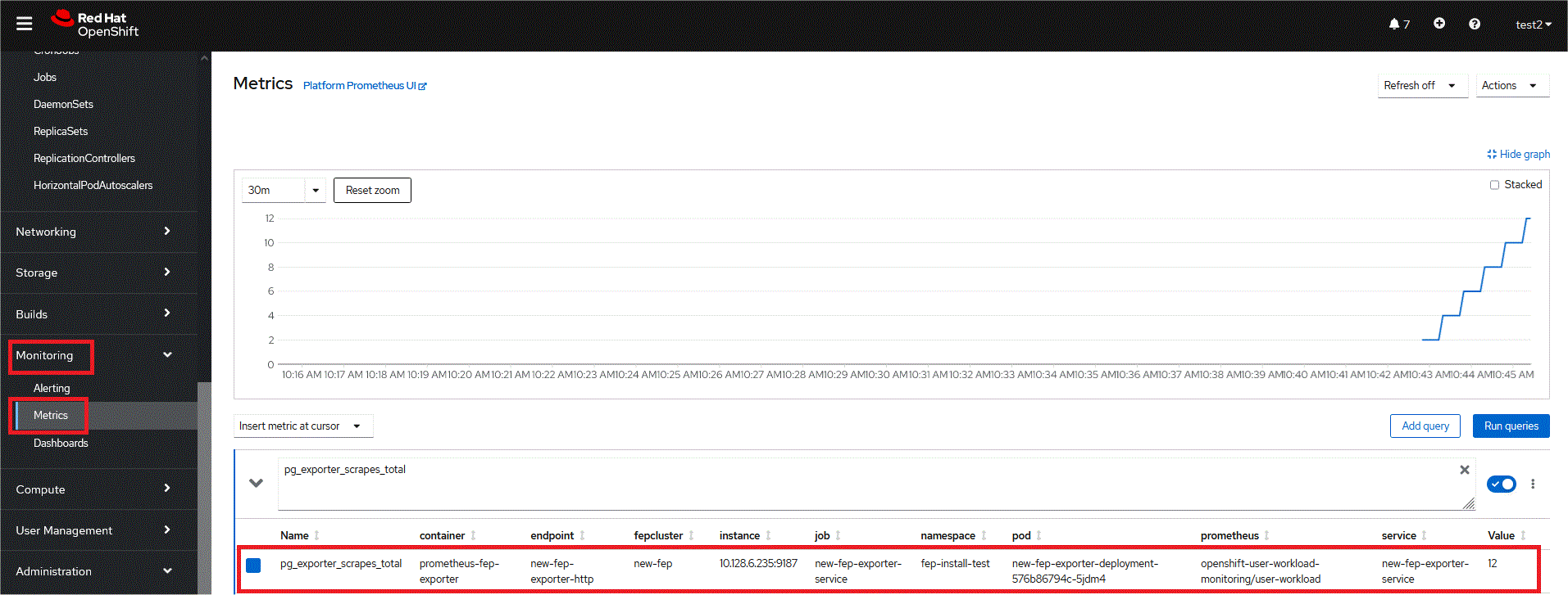 Now user can see scrape FEPExporter specific metrics on Openshift Platform in monitoring section area using PROMQL to specify a metrics of interest