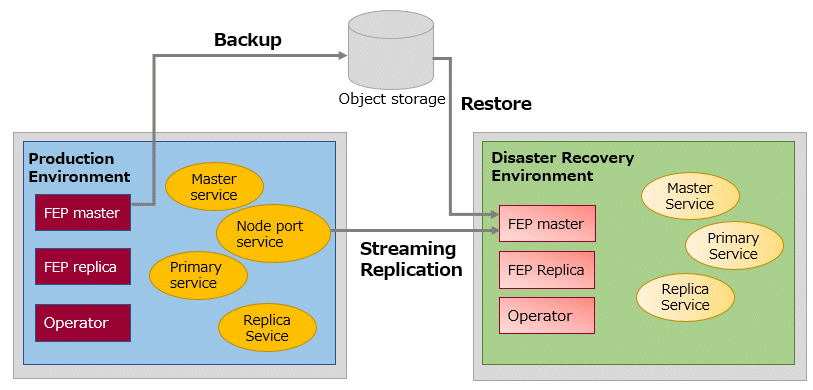 The streaming replication method achieves direct data synchronization between the database in the production environment and the database in the disaster recovery environment.