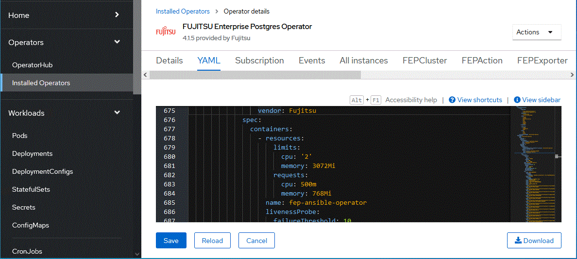 $ oc edit csv fujitsu-enterprise-postgres-operator.v4.1.5